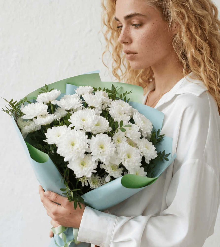 Классика, которая никогда не выйдет из моды. Лаконичный и невероятно пышный букет из кустовой хризантемы, дополненный свежей декоративной зеленью (фисташка) Это идеальный выбор, если вы хотите подари…