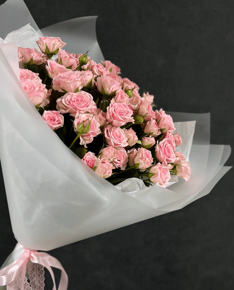 Букет из кустовых роз с небольшими, плотно расположенными бутонами. Их нежно-розовый цвет придаёт букету романтичность и утончённость. Идеальный подарок Маме, Жены ,Бабушке, Сестре, Подруге, зн...