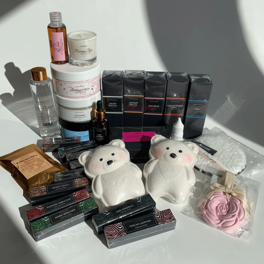 Побалуйте себя приятной покупкой или сделайте подарок близкому человеку. Описание набора: 1. Свеча, 50г; 2. Арома для дома, 50мл; 3. Мицеллярная вода, 150мл; 4. Маска для лица Клеопатра, 40г; 5…