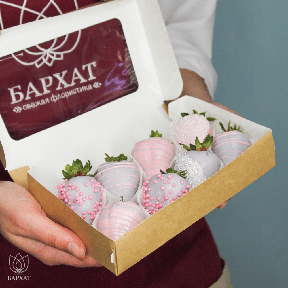 Крафтовая коробочка с клубникой в шоколаде (8 ягод) подойдет в качестве необычного вкусного подарка или как десерт, чтобы побаловать себя.