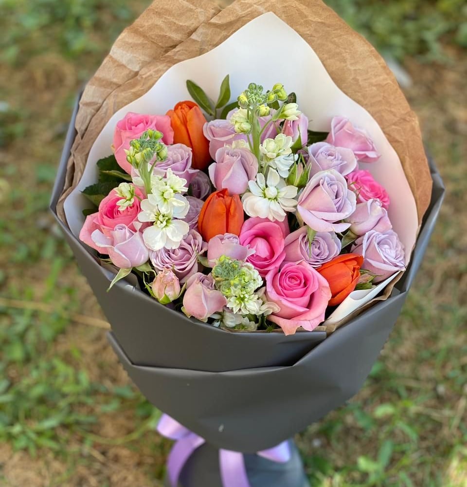 Букет «Лайт» из роз и экзотических цветов