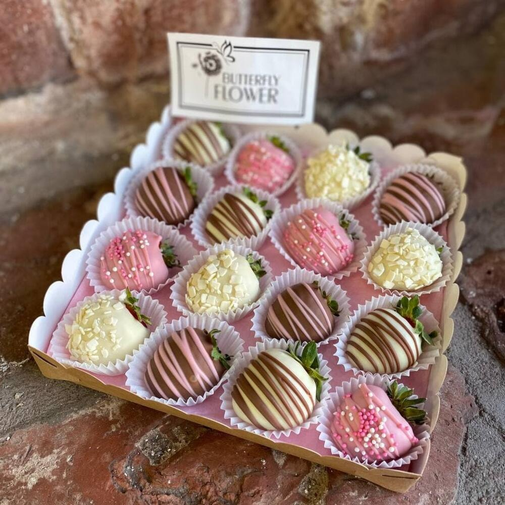 Композиция из клубники в шоколаде в дизайнерской коробке
