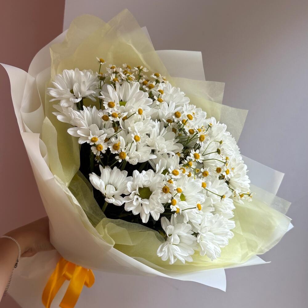 Букет «Летнее поле ромашек» из ромашек и хризантем