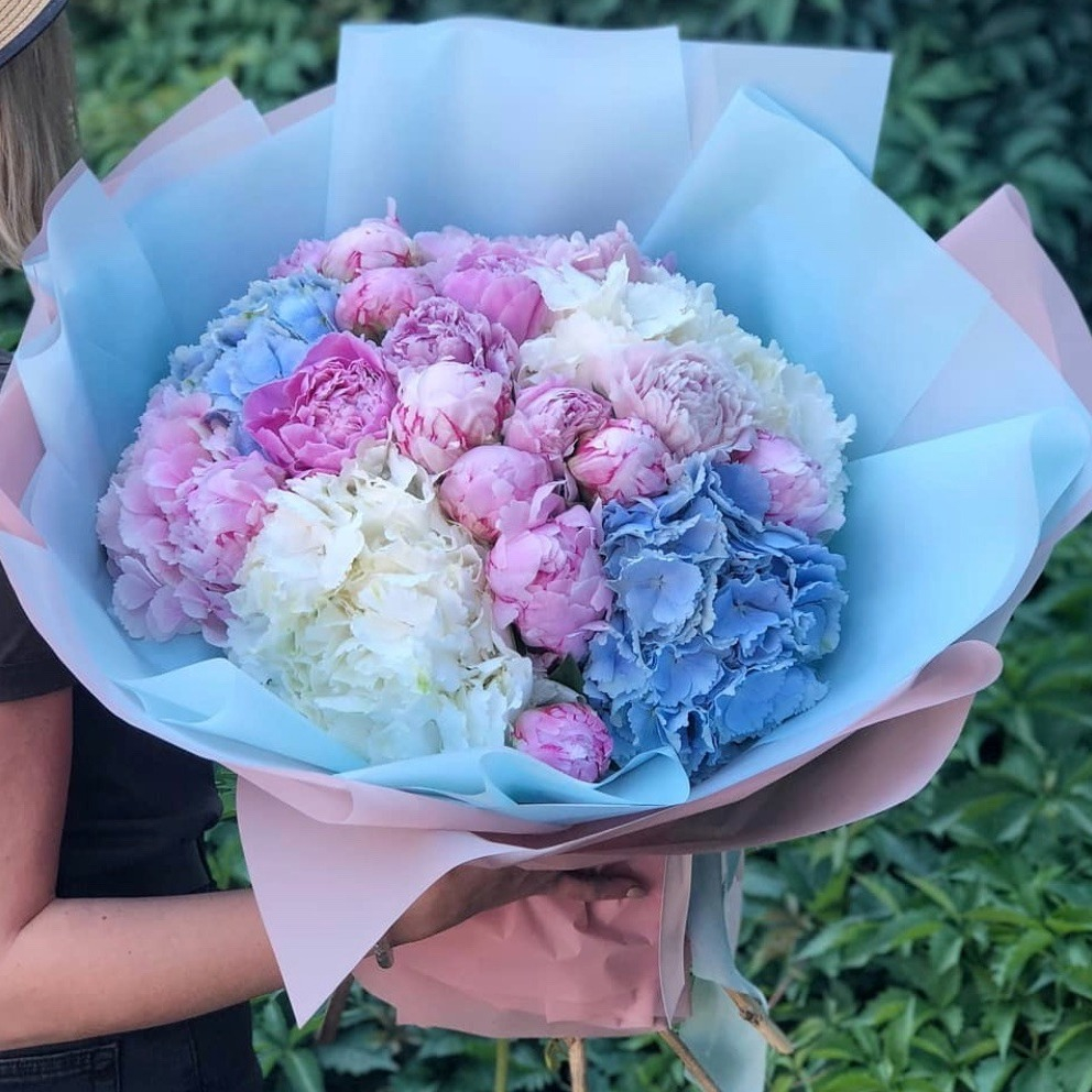 Букет «Летний ветерок» из пионов и гортензий
