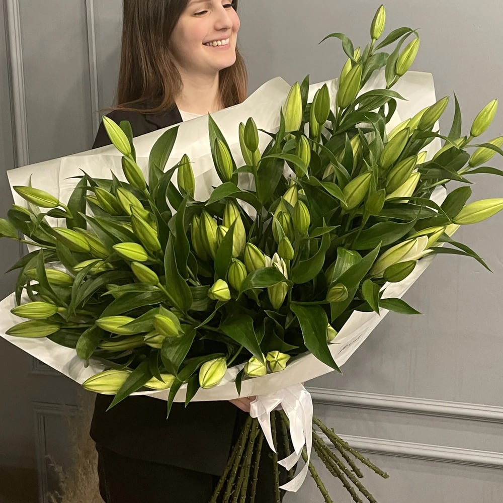 Этот изысканный букет состоит из 15 прекрасных лилий, которые символизируют чистоту, нежность и красоту. Они дополнены авторской упаковкой, которая подчеркивает уникальность и изысканность этого подарка. Идеальный выбор для особых случаев и важных событий.