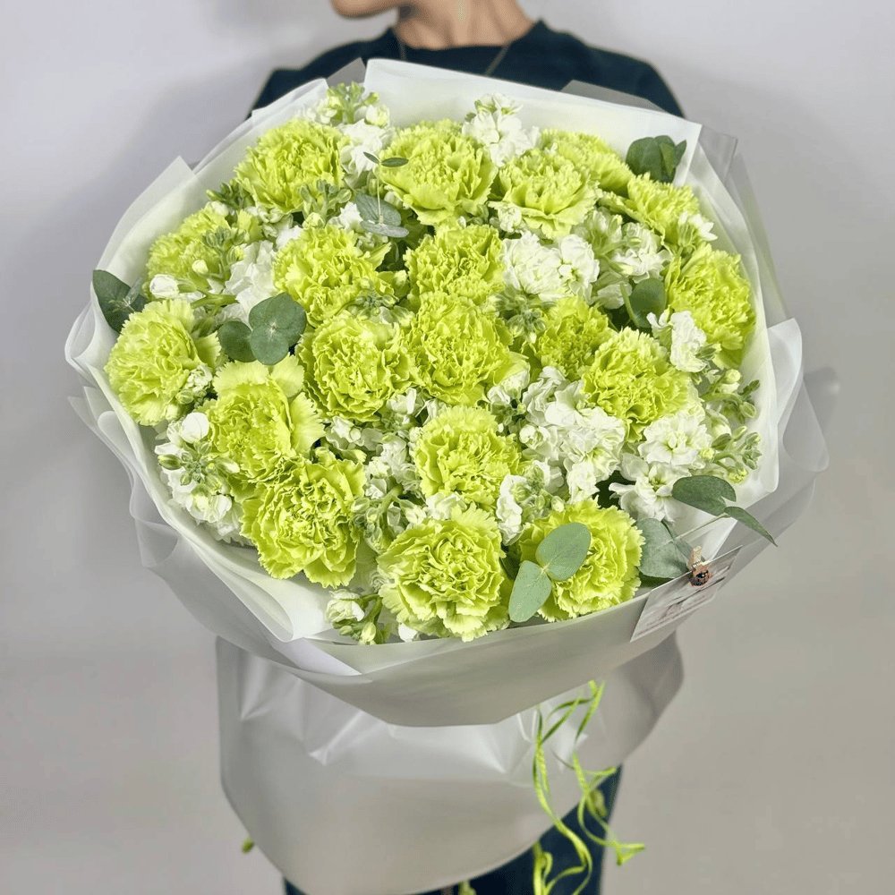 Букет «Лимонный шербет» из гвоздик и маттиолы
