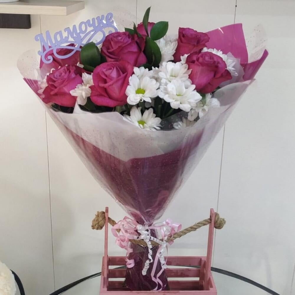 Букет «Лучший день с топпером» из роз и хризантем