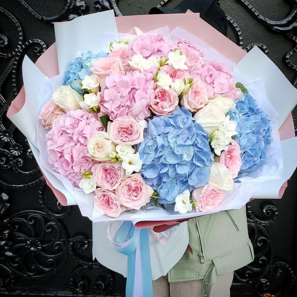 Букет «Луис» из фрезии и гортензий