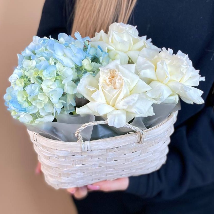 Букет «Лукошко с гортензией»