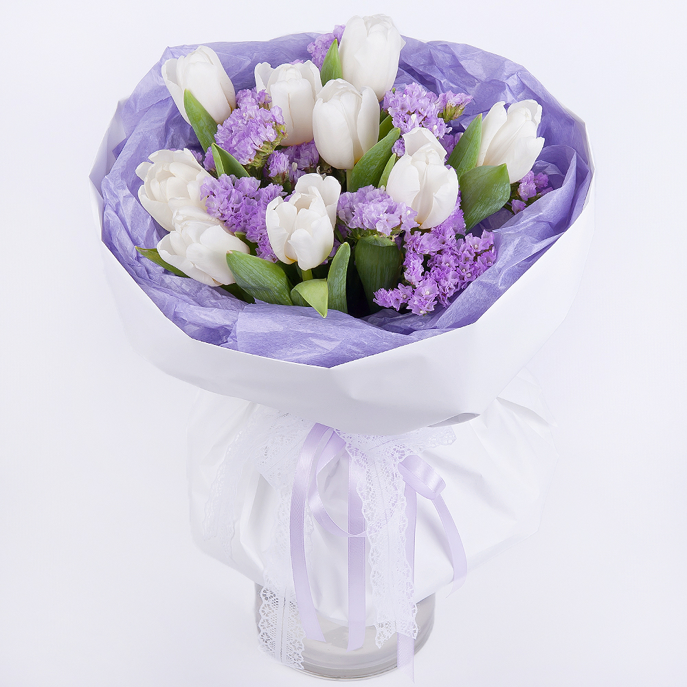 Букет «Лунный блик» — это воплощение нежности и изящества, которое подарит получателю ощущение спокойствия и умиротворения. В этом букете гармонично сочетаются тюльпаны и статица. Каждый цветок им...