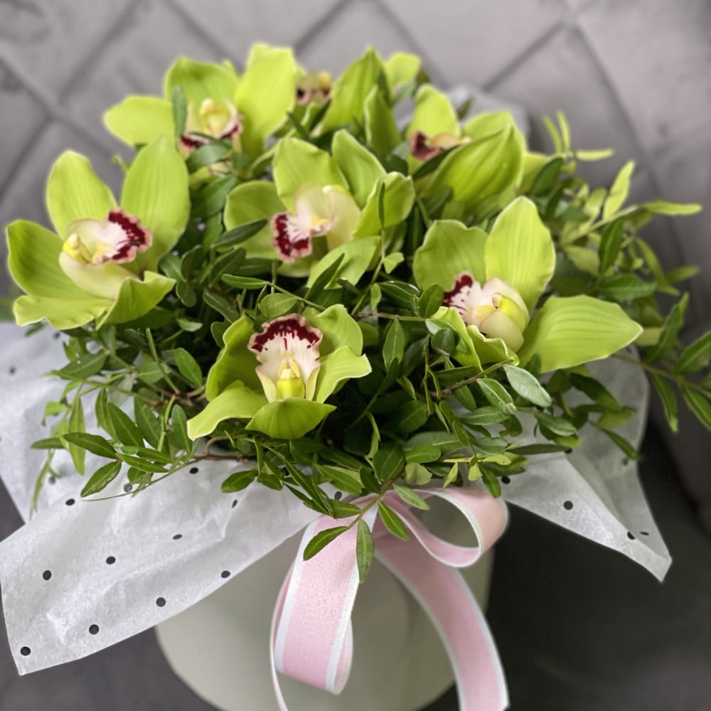 Шляпная коробка с цветами «Любимая орхидея»