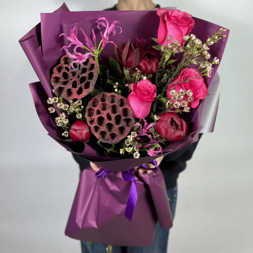 Букет «Магия полуночи» из пионов и лилий
