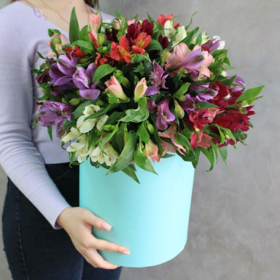 Шляпная коробка с цветами «Магия цветов» из альстромерий