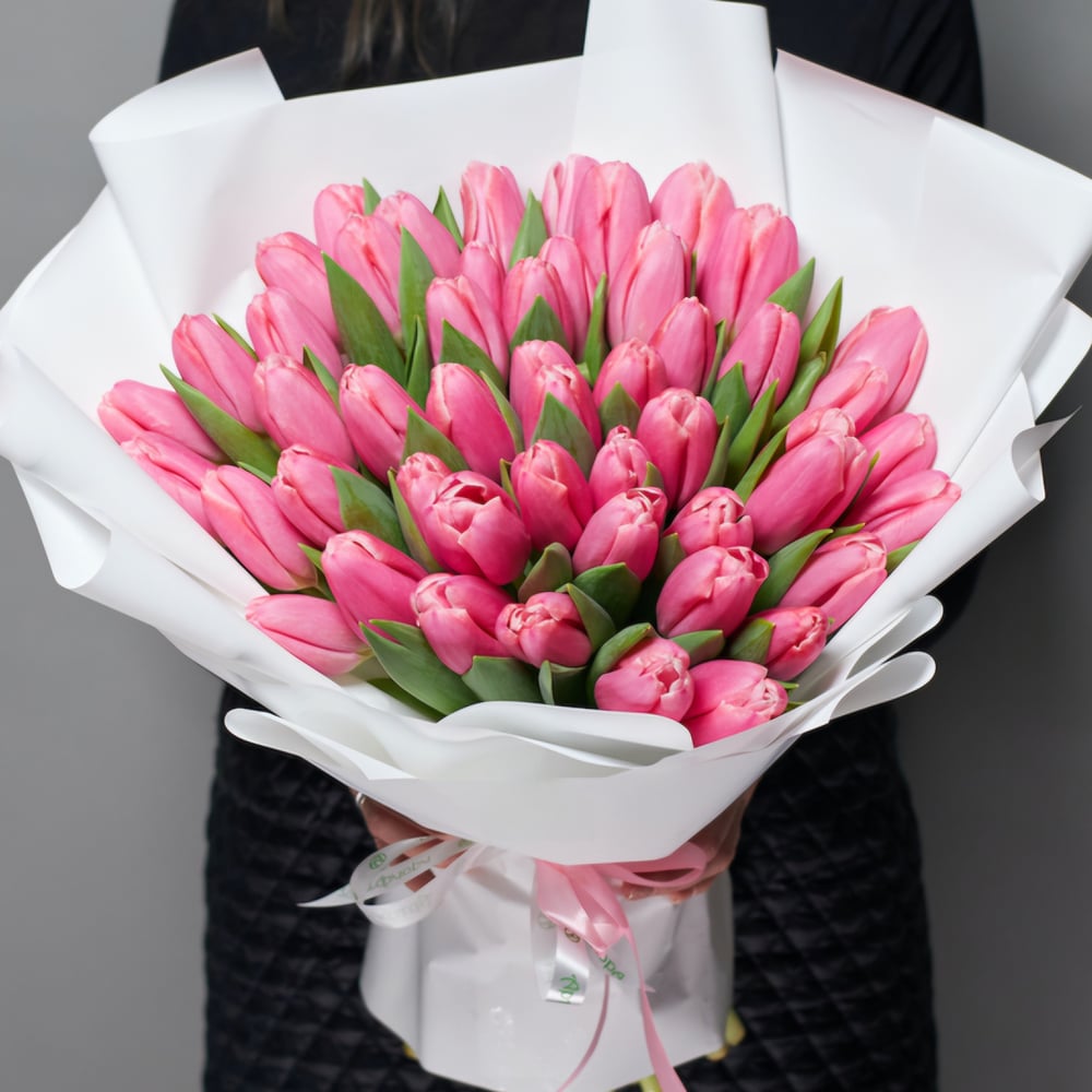 Букет из 51 розового тюльпана - незабываемый подарок! Если вы хотите что-то кому-то сказать важное, сделать предложение, а также поздравить с широким жестом, то выбор этого огромного букета - самый верный вариант! Кому будет приятно получить такую цветочную композицию: Маме на 8 Марта Поздравить с Международным женским днем бизнес-партнера Удивить возлюбленную, особенно если она любит тюльпаны Преподнести на юбилей Подарить любимой актрисе Учитывая символизм букета, а 51 - это безмерная любовь, с ним можно смело делать предложение выйти замуж. А также поддержать это решение, например, если вы - родители мужчины, и подарить такой огромный букет будущей невестке в знак дополнительного приглашения стать одной семьей. Такой подарок не забудется, а красивый жест запомнится.