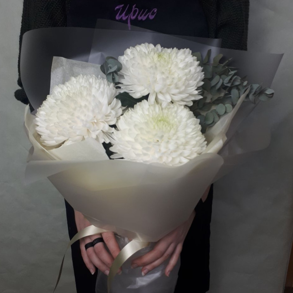 Букет «Магнум с эвкалиптом» из хризантем