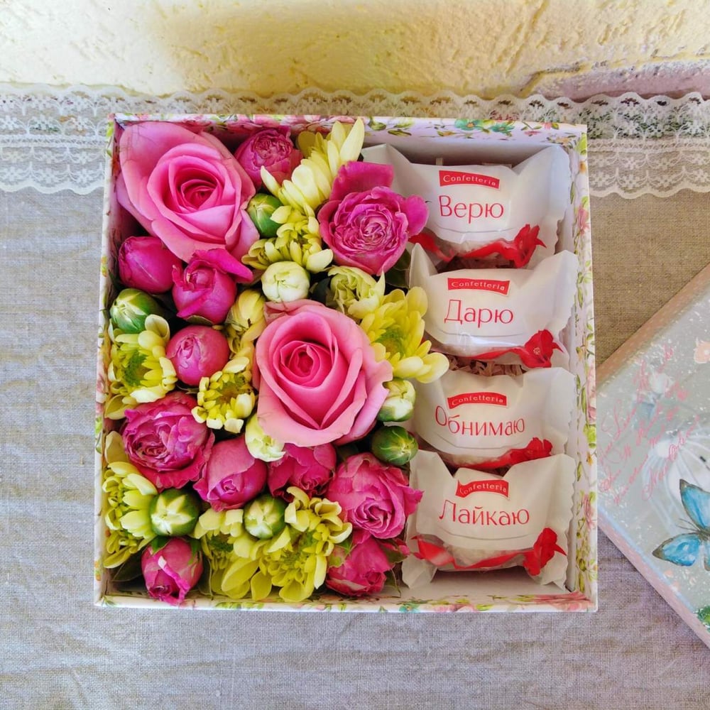 Подарочный набор «Маленькая радость» из роз и хризантем