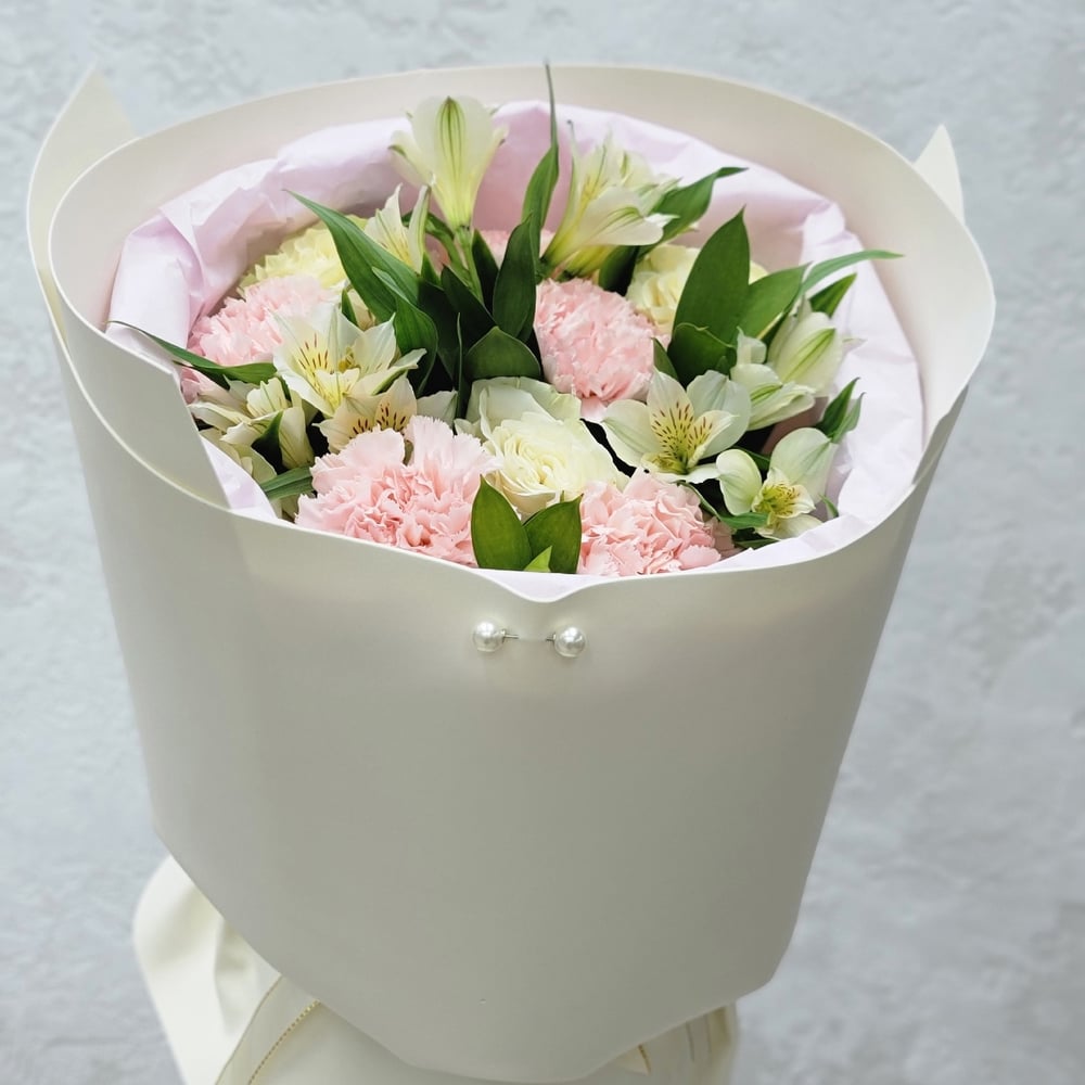 Букет «Маленькое чудо» из гвоздик и альстромерий