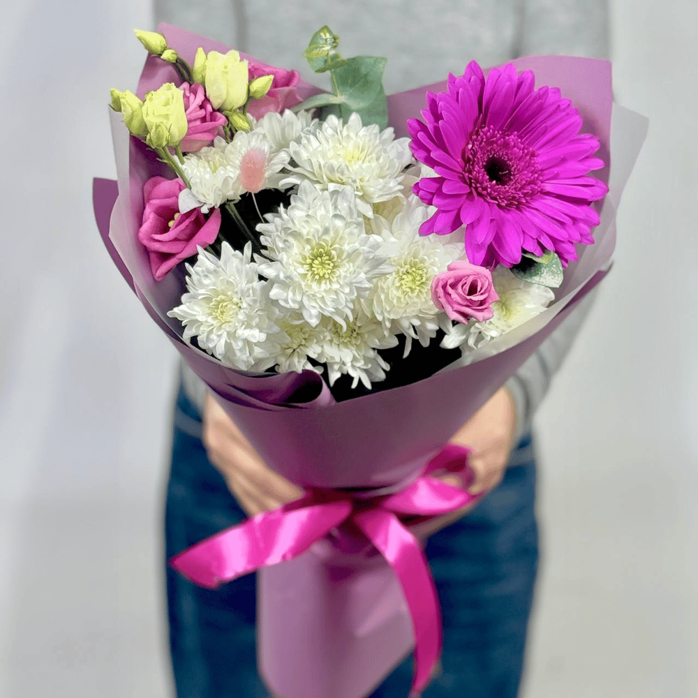 Букет «Малиновый эксклюзив» из эустом и хризантем