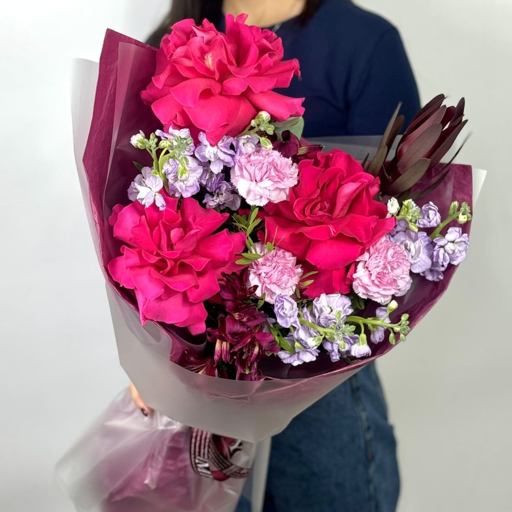 Букет «Малиновый восход» из альстромерий и гвоздик