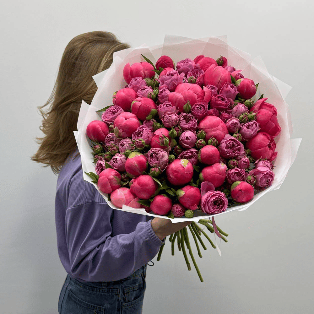 Шикарный букет пионов и кустовых пионовидных роз! Букет, который произведет невероятное впечатление! В состав букета входит 25 пионов и 10 кустовых пионовидных роз. Погрузитесь в мир утонченной красоты с нашим эксклюзивным букетом, в который вошли роскошные пионы сорта "Корал Шарм" и изысканные пионовидные розы сорта "Мисти Баблз". Этот букет станет идеальным подарком для любого повода — от романтического свидания до торжественного мероприятия.