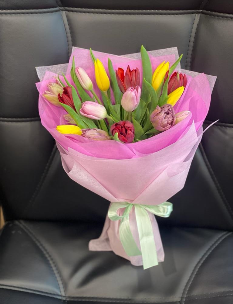На языке цветов, тюльпаны символизируют благополучие, любовь и счастье. На любом торжестве букет тюльпанов будет смотреться торжественно и вполне уместно. Благодаря их богатой цветовой гамме, вы сможете выразить любые эмоции и пожелания подаренным букетом.
