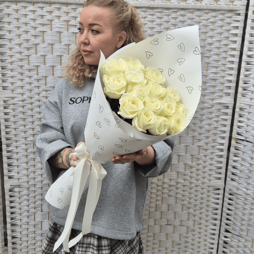 Букет белых роз — это универсальный подарок, который символизирует чистоту, искреннюю любовь, уважение и невинность