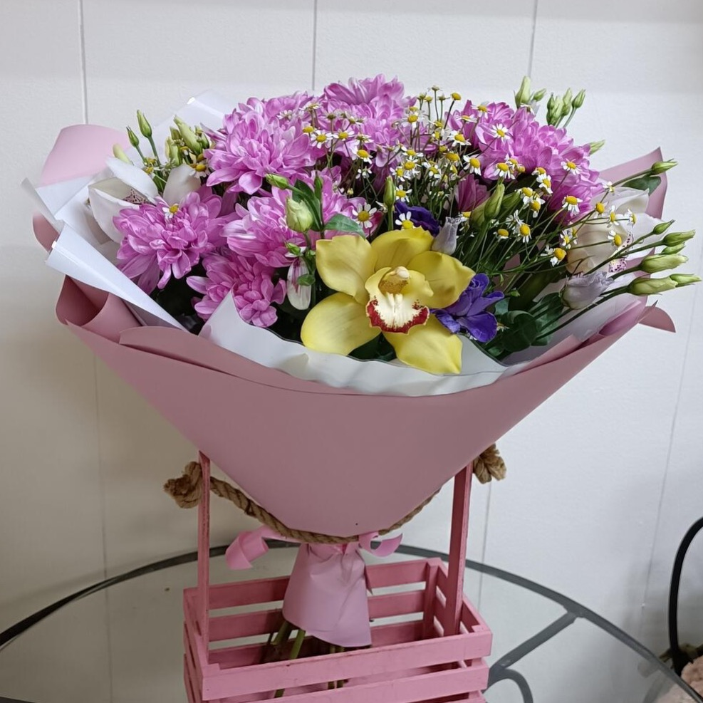 У нас, вы можете заказать: - роскошные букеты; - цветочные композиции в шляпных коробочках; - композиции в форме сердца; - гигантские и премиум букеты; - подарочные корзины и корзины с цветами; - коробочки с цветами и сладостями; - букеты из ягод и фруктов; - мягкие игрушки; и другие цветы и подарки, которые никого не оставят равнодушными! Указаны примерные размеры букета, чтобы вы могли представить его внешний вид и масштаб, но фактически размеры могут немного отличаться