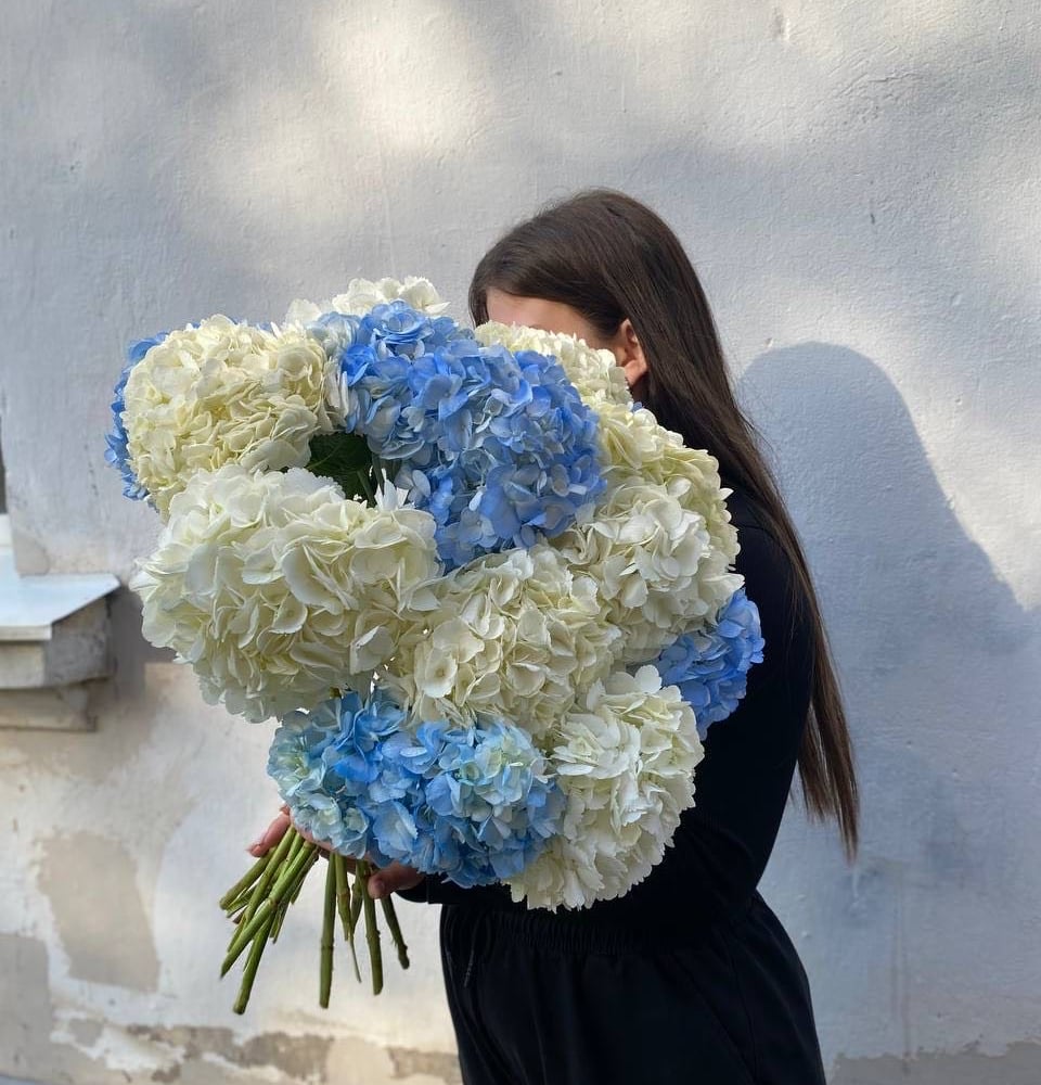Букет «Микс 15 гортензий белых и голубых 💙»