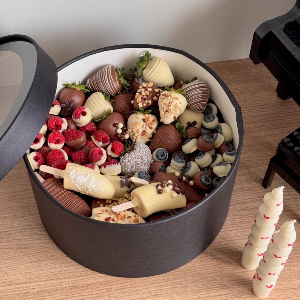 Если хочется чего-то особенного, а чего именно не знаете, то этот бокс самое то! Клубника, голубика, малина, бананы - всё это в шоколаде! С разными топпингами!