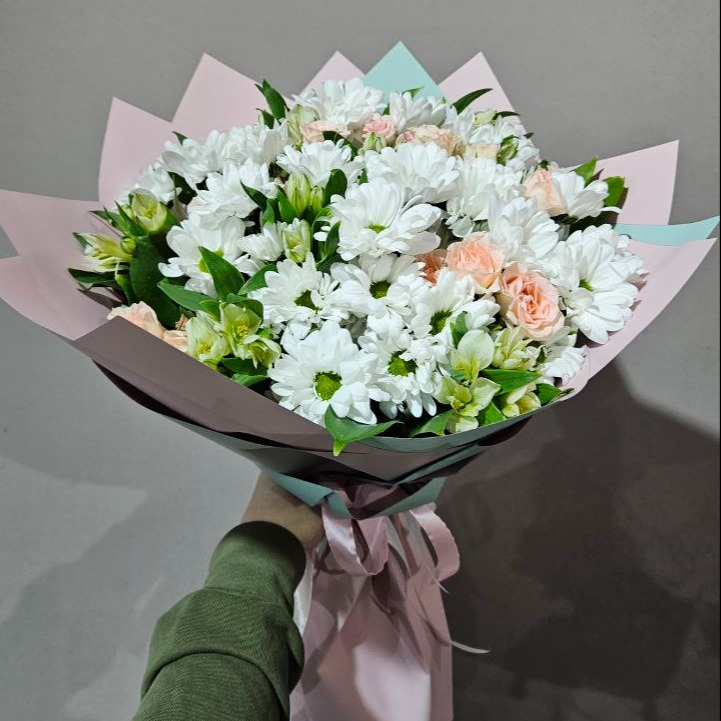 Букет из хризантем с кустовой розы и Альстромерией