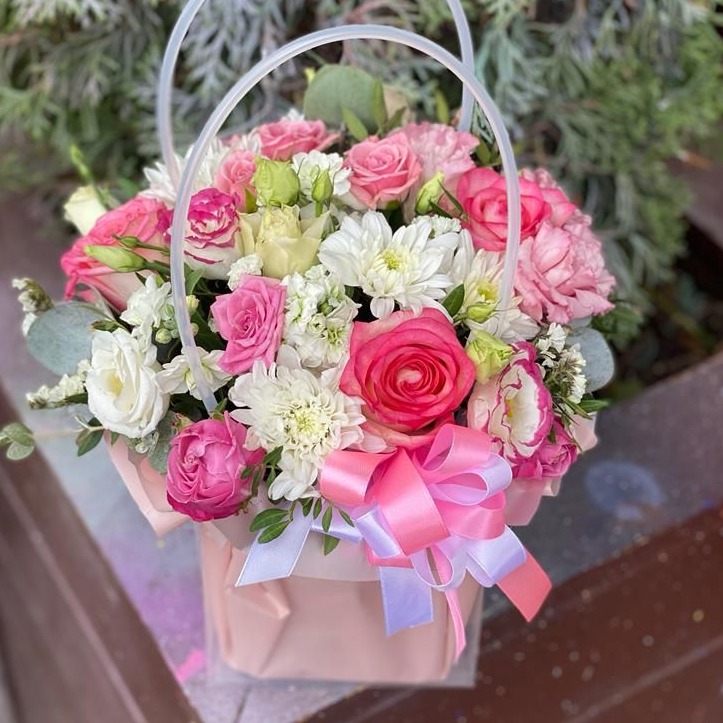 Коробка с цветами «Милый комплимент» из роз и эустом