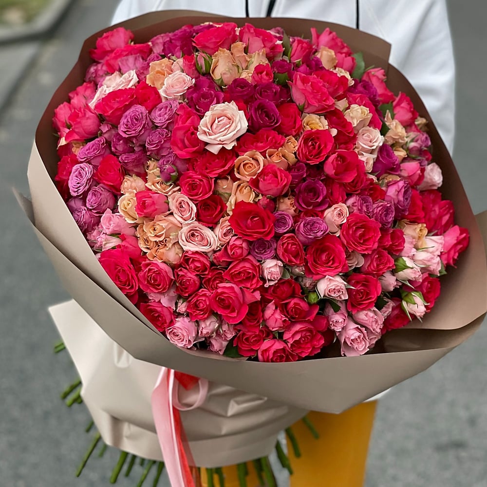 Шикарный букет состоит из 101 ветки кустовой розы.
