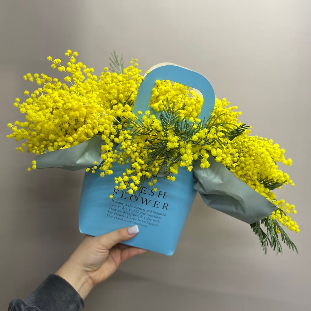 Коробка с цветами «Мимоза в сумочке»
