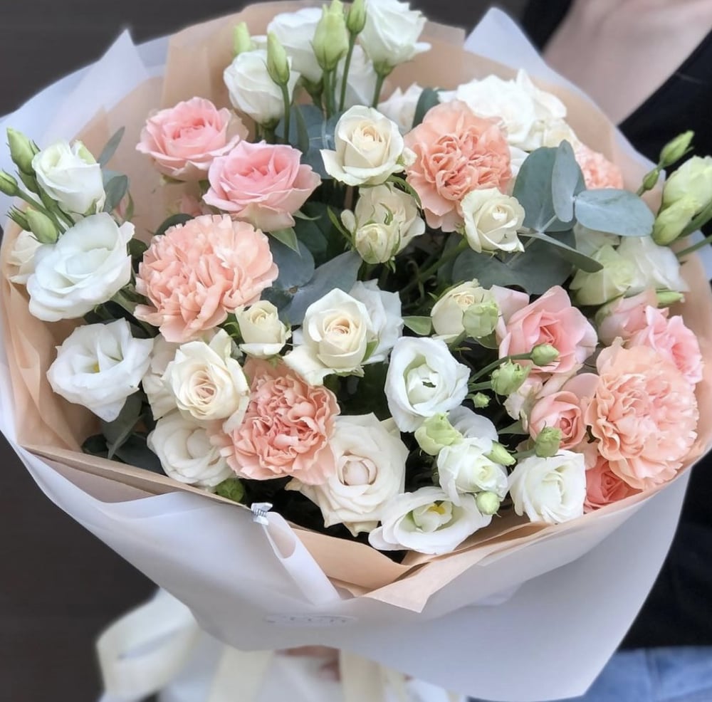 Букет «Мираж» из роз и эустом