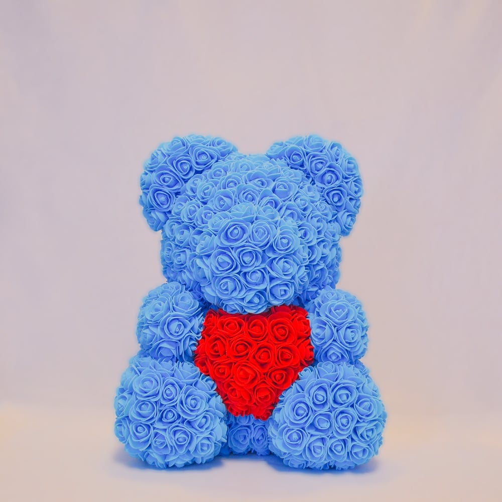 Мишка из роз с сердцем Голубой 40 см