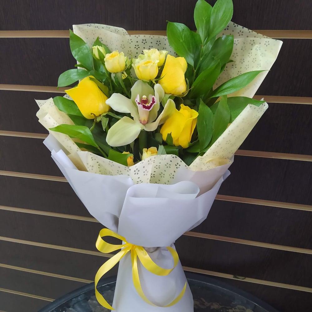 Букет «Мохито» из роз и орхидей