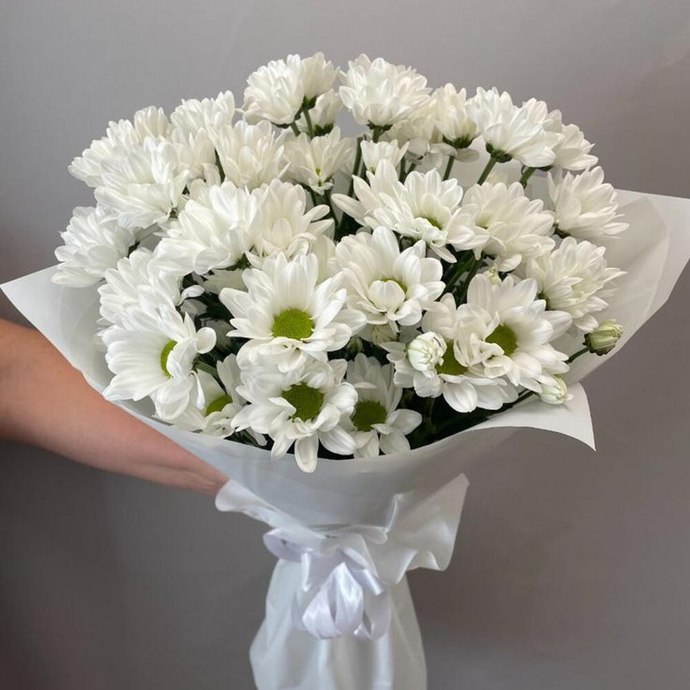 Белые хризантемы символизируют невинность, искренность и доброту. Этот букет станет прекрасным подарком для любого случая: будь то свадьба, юбилей или просто желание порадовать близкого человека. О...