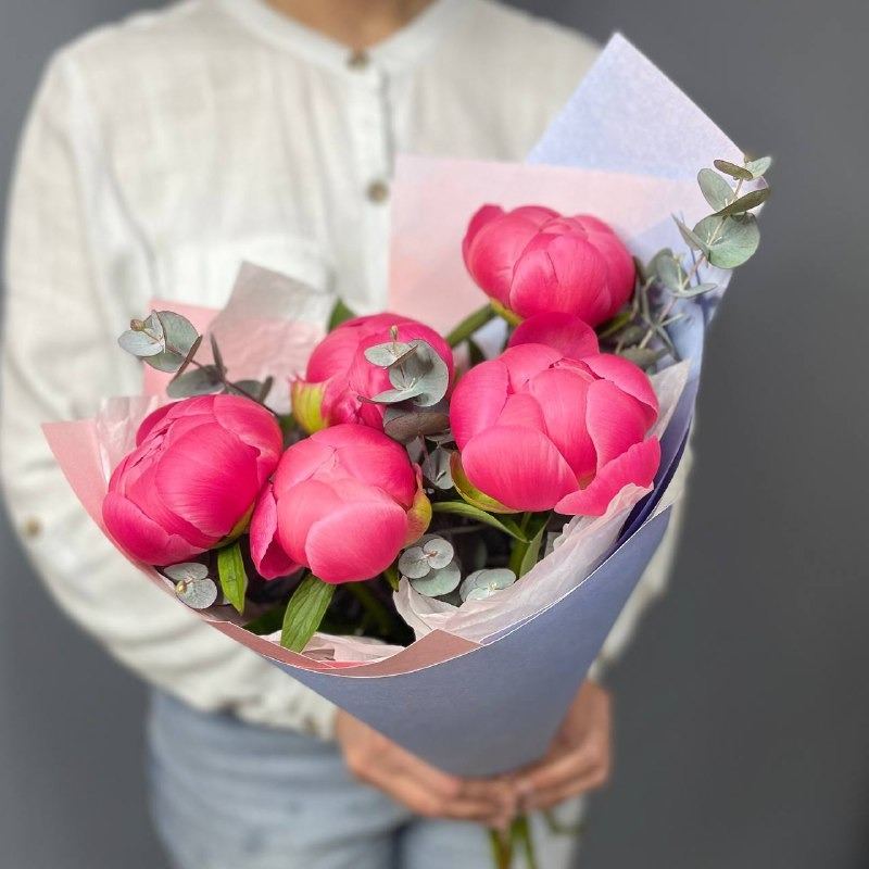 Моно букет из 5 пионов