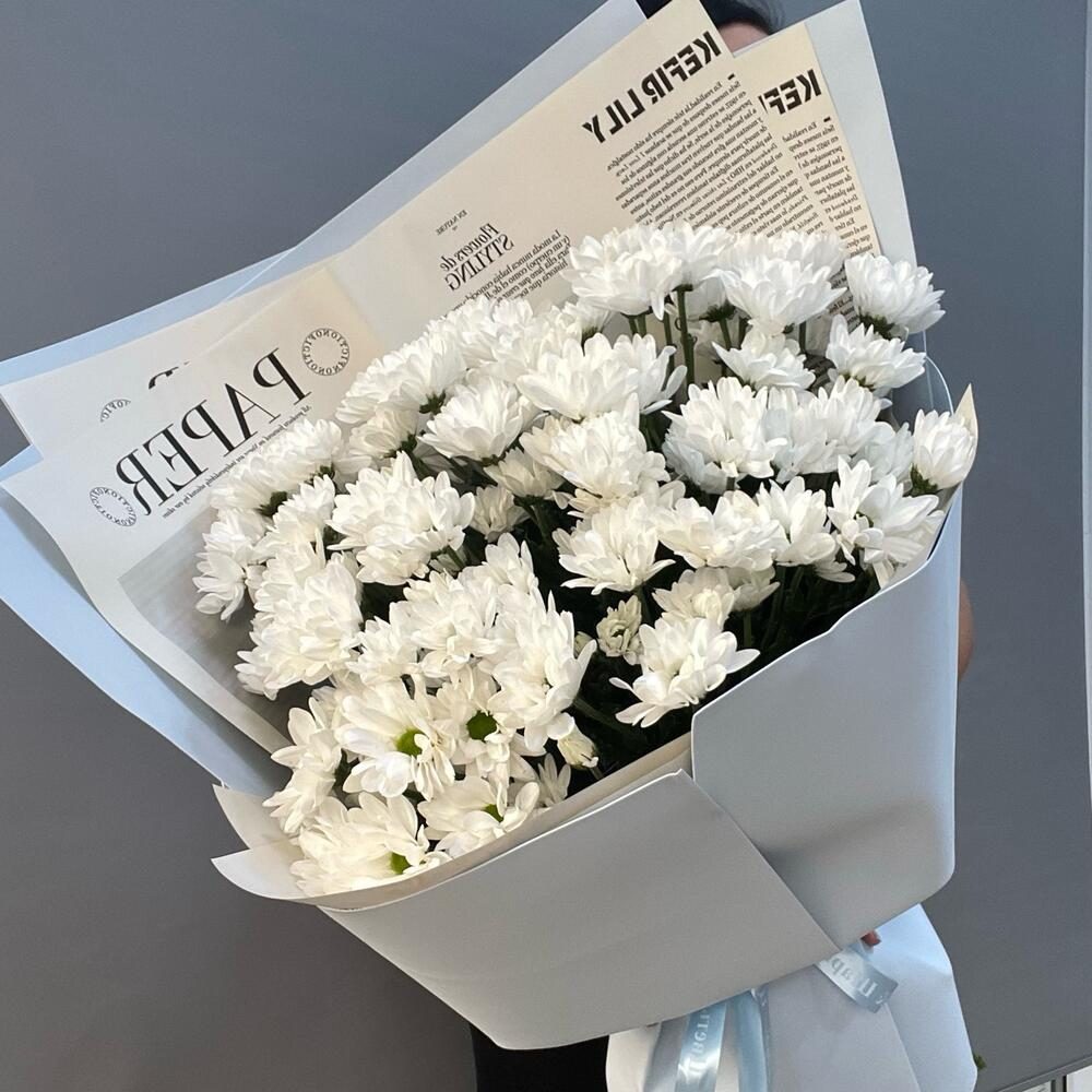 Монобукет из хризантемы ромашки в упаковке из фоамирана Этот изящный монобукет сочетает в себе красоту и нежность с листьями и цветами, выполненными из мягкого, реалистичного фоамирана, что прид...