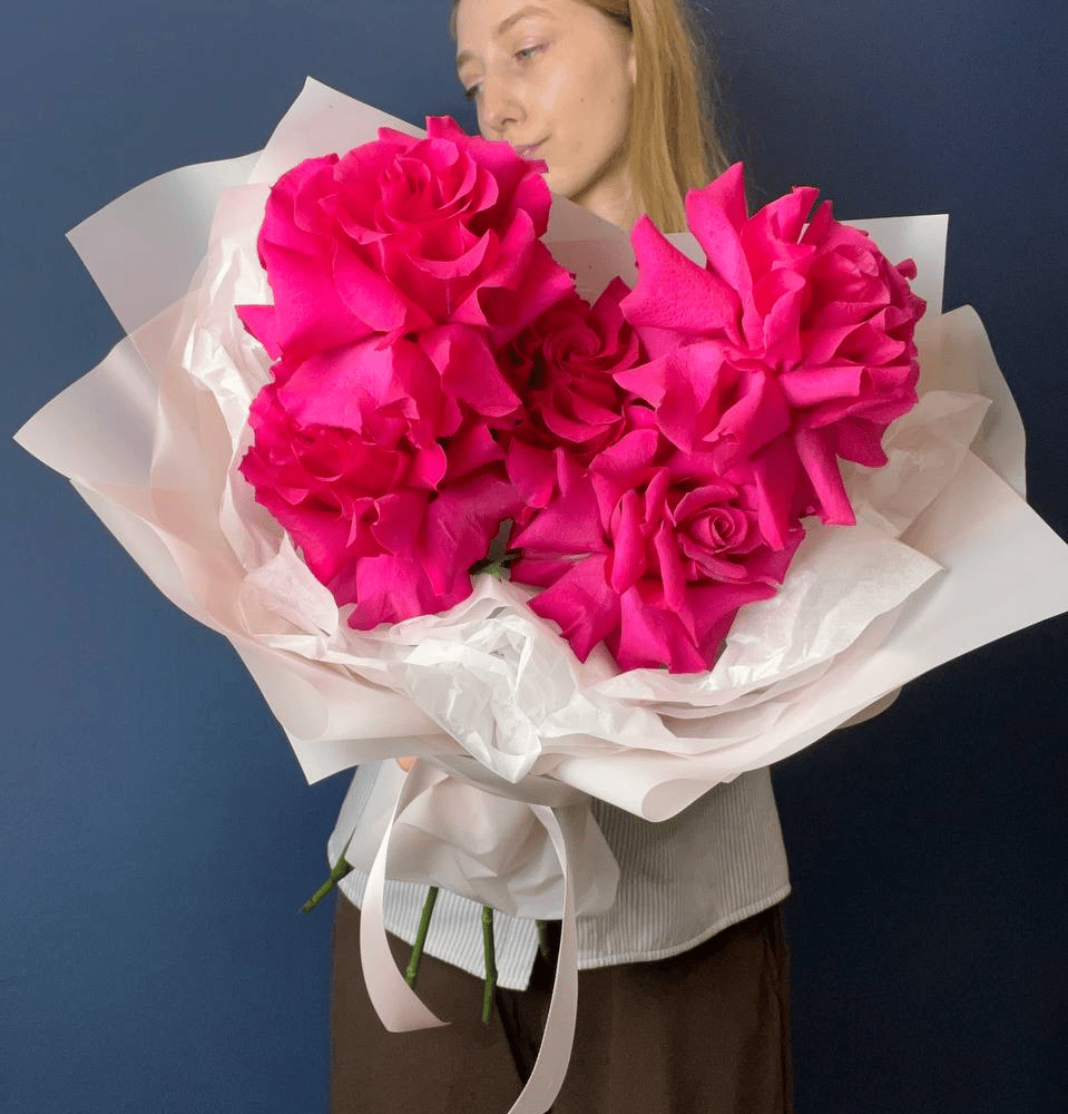 Элегантный букет из 5 французских малиновых роз - воплощение страсти и изысканности. Бархатные лепестки насыщенного малинового оттенка подчёркивают глубину чувств и утончённый вкус. Французские р...