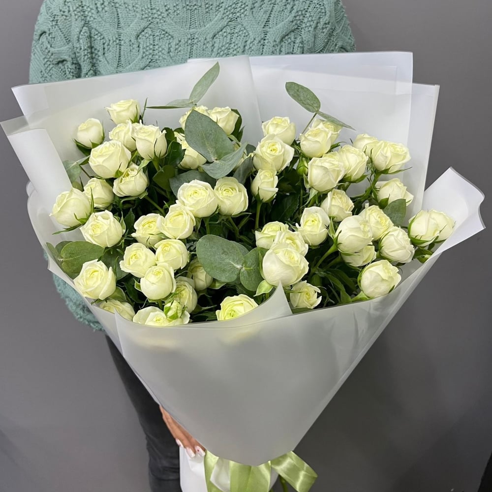 Монобукет белых кустовых роз