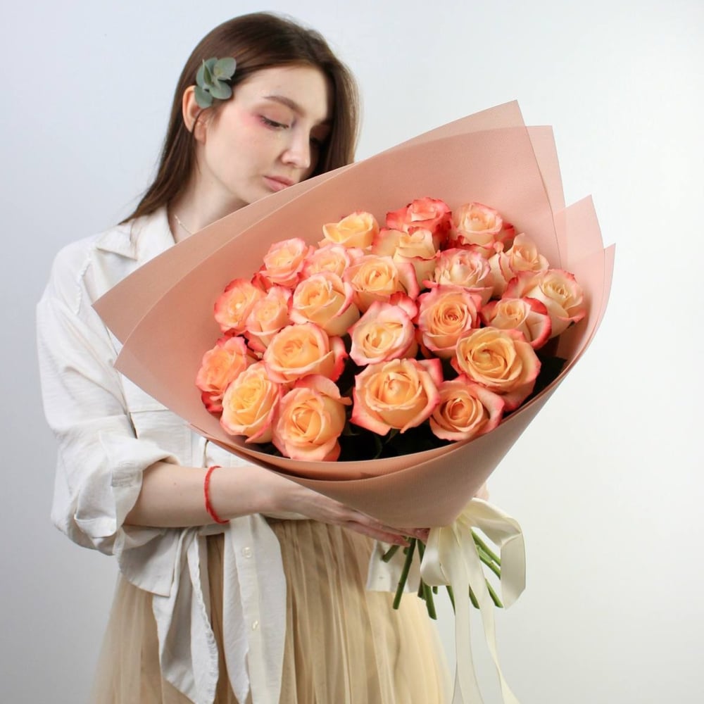 Монобукет из 23 персиковых роз