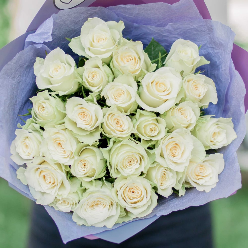 Букет из белых роз в воздушной эксклюзивной упаковке.