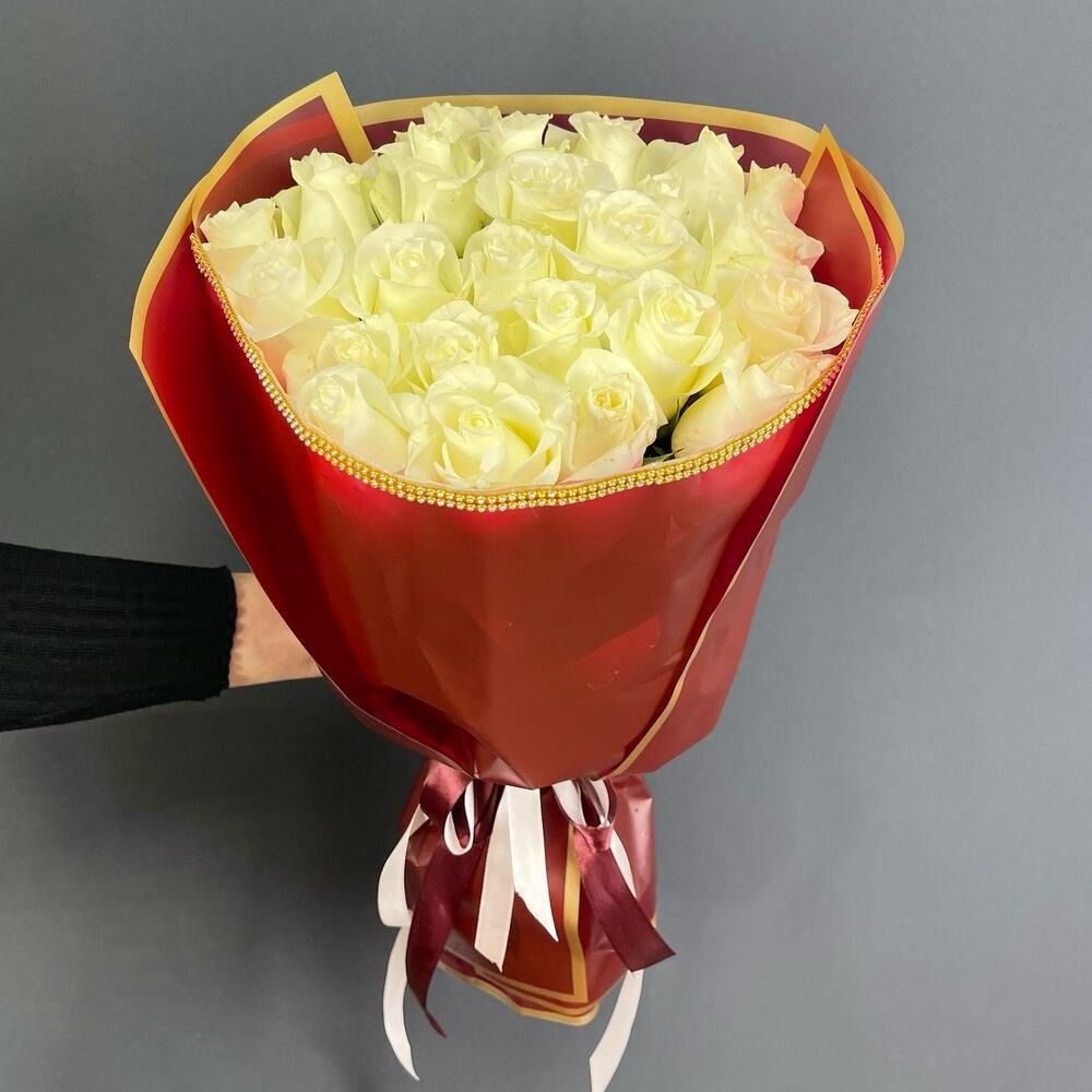 Монобукет из 25 кенийских белых роз в дизайнерской упаковке