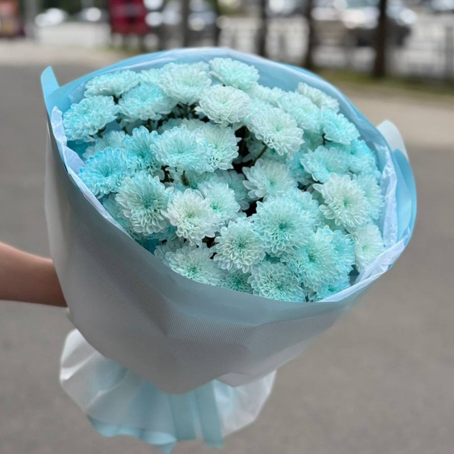 Монобукет из 7 голубых хризантем