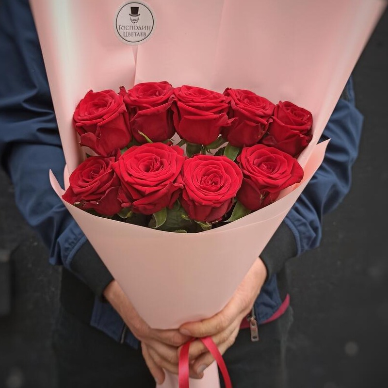 Монобукет из 9 красных роз 50 см