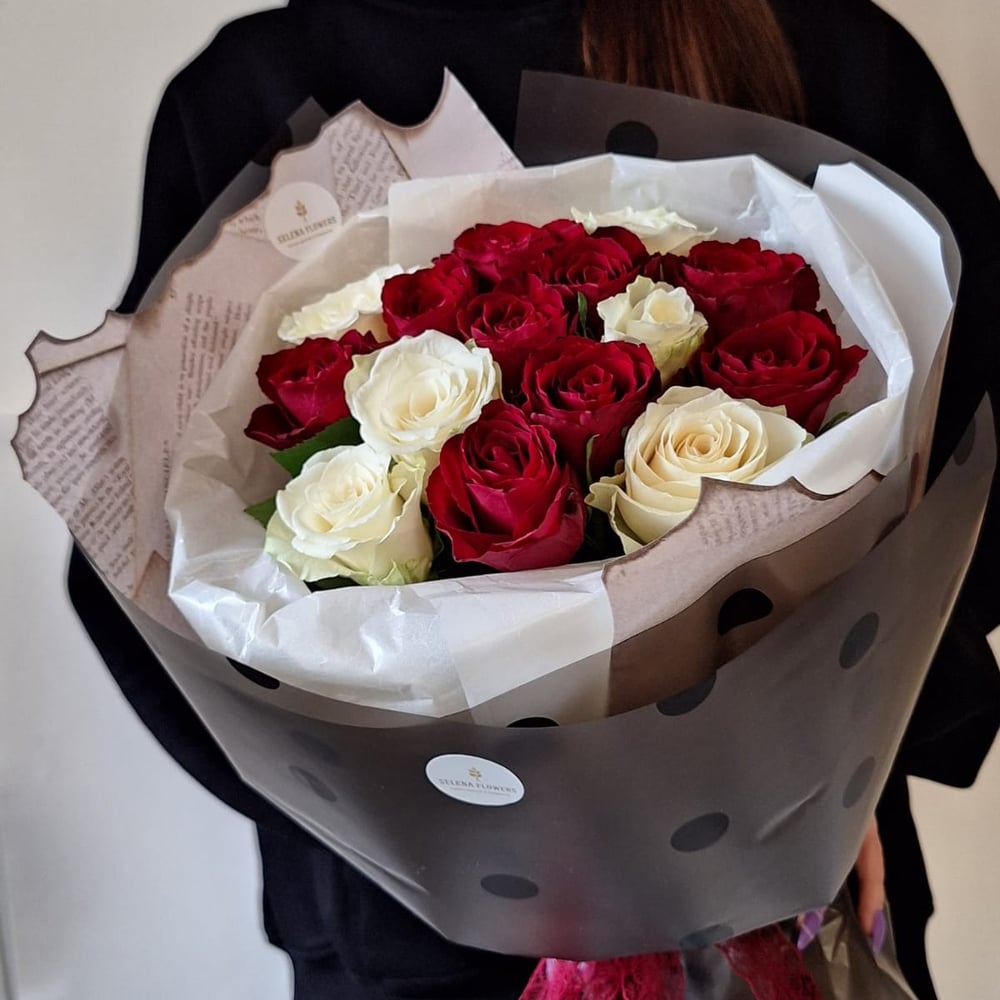 Монобукет из красно-белых роз