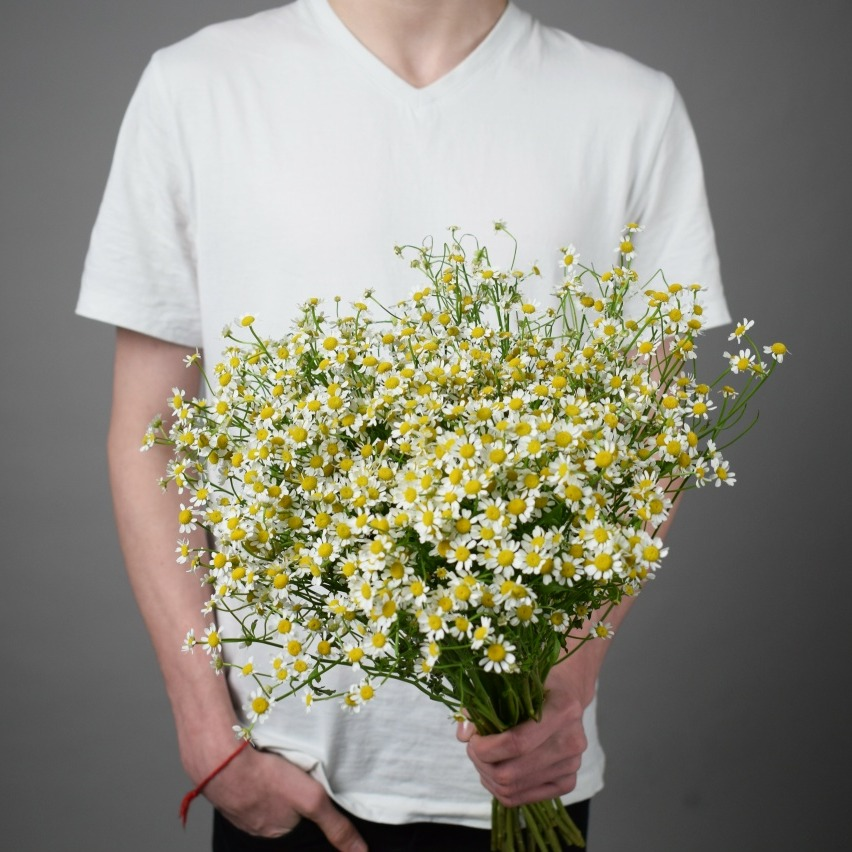 Представляем очаровательный монобукет из 20 белоснежных танацетумов в элегантном оформлении атласной лентой - воплощение природной свежести и нежности! Особенности композиции: • 19 пышных соцвети…