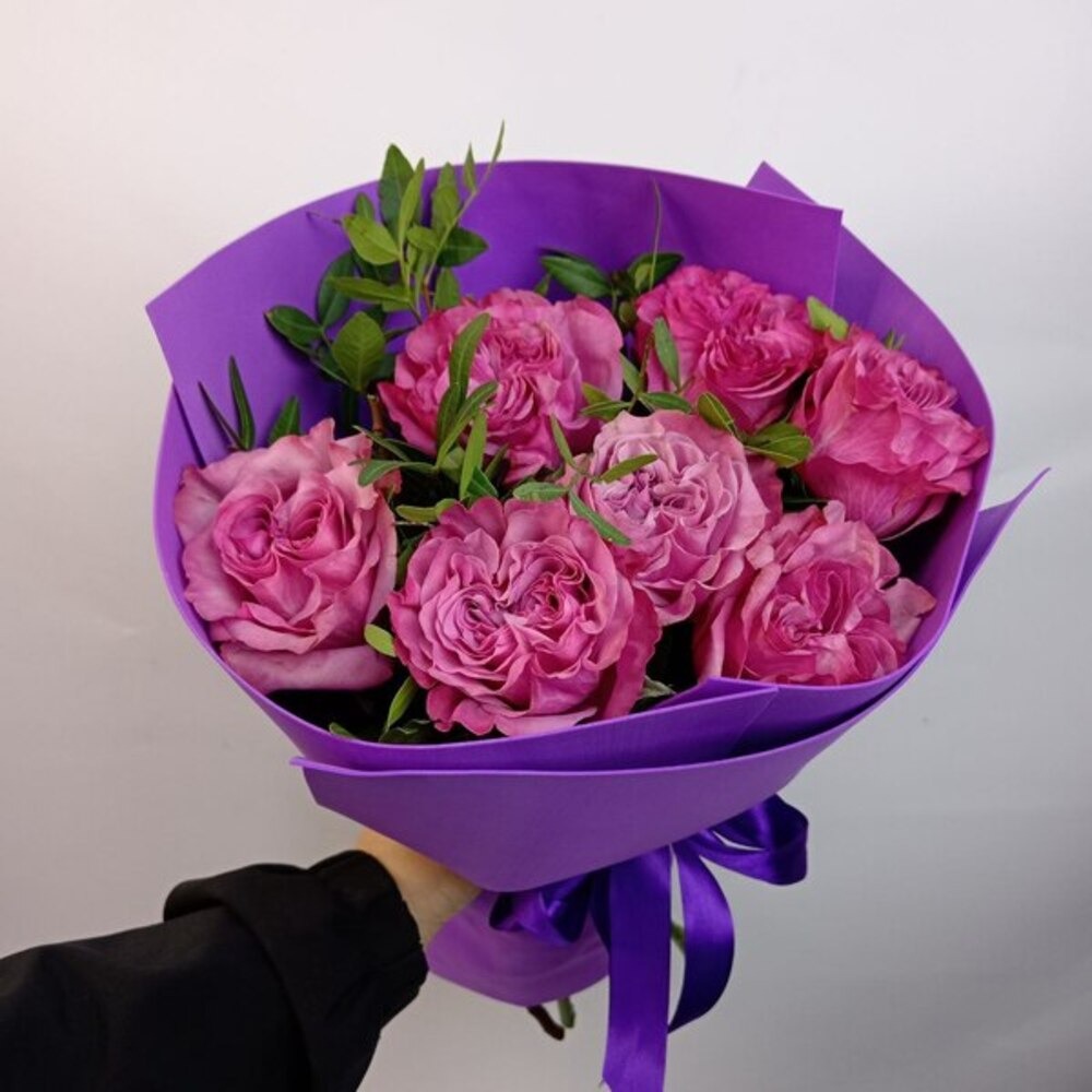 Состав Фисташка - 3 шт. Роза пионовидная - 7 шт. Упаковка фоамиран - 1 шт. Размер Ширина - 28 см Высота - 45 см