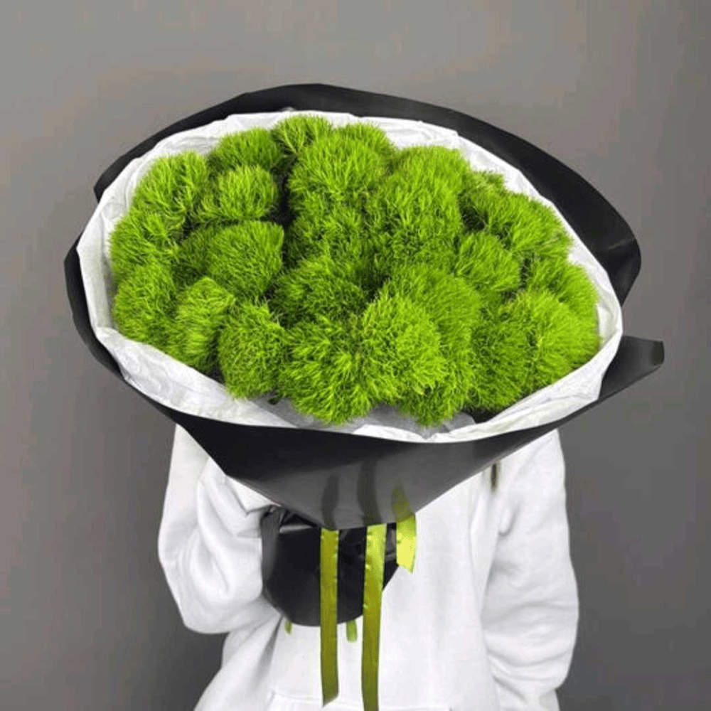 Монобукет в стильной упаковке из 35 зеленых гвоздик